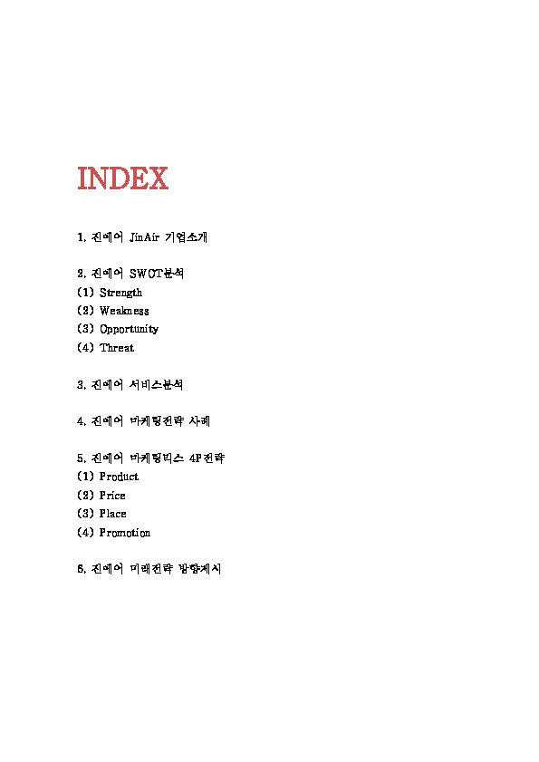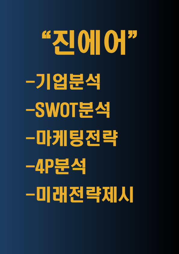 진에어 JINAIR 기업소개와 SWOT분석및 마케팅전략과 4P전략분석및 진에어 미래전략제시- 진에어 마케팅연구 레포트