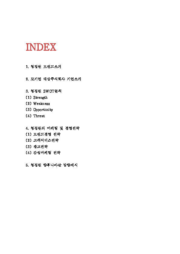청정원 마케팅,경영전략 레포트- 청정원 브랜드분석과 SWOT분석및 청정원 마케팅과 경영전략분석및 향후나아갈방향 제시