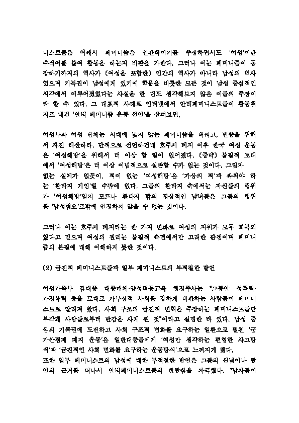 페미니즘 개념과 역사연구및 한국에서의 페미니즘과 문제점분석및 페미니즘 향후방향성 제언