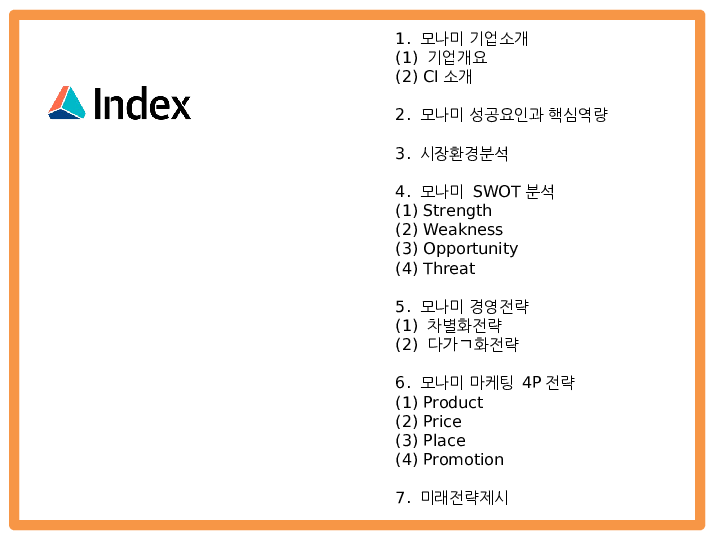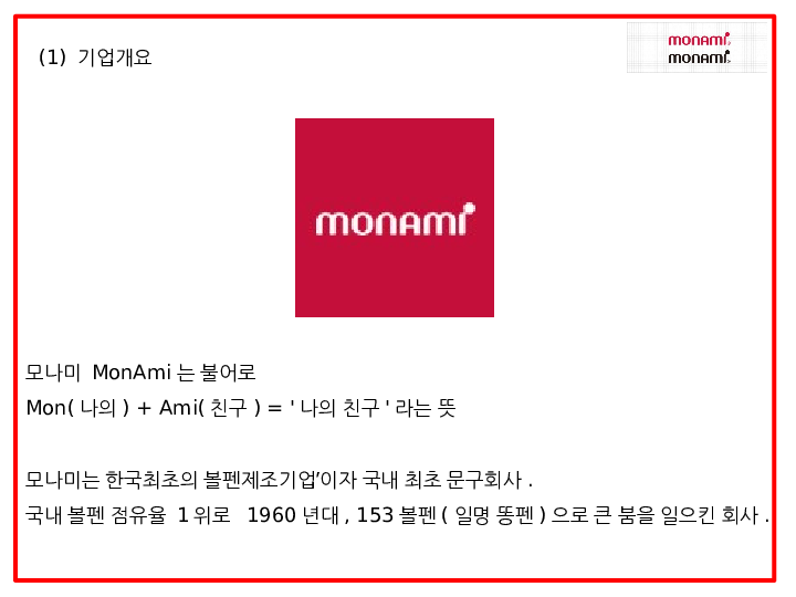 모나미 monami 기업분석과 성공요인분석및 모나미 SWOT분석및 마케팅,경영전략 사례분석과 미래전략제시 PPT