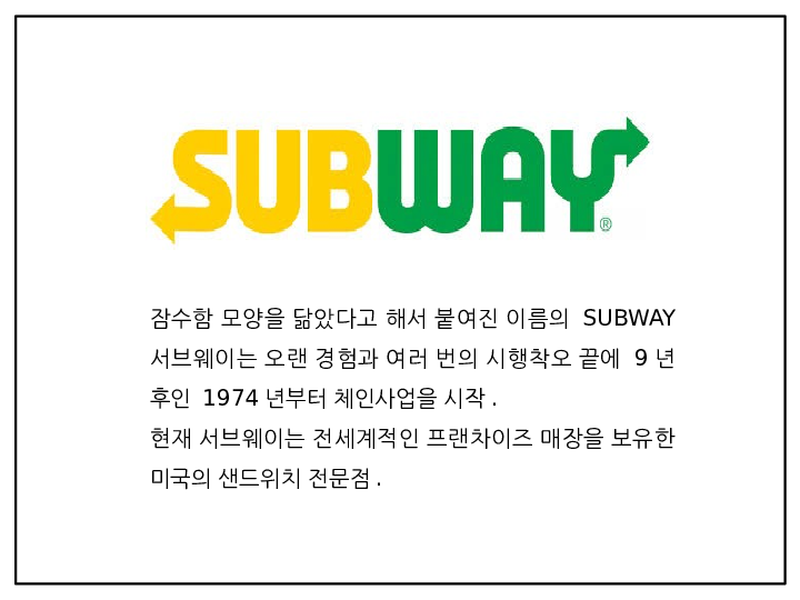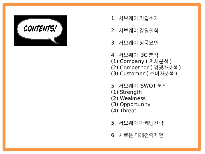서브웨이 마케팅 PPT - 서브웨이 SUBWAY 기업분석,성공요인,3C분석과 서브웨이 SWOT분석및 마케팅전략분석과 새로운 미래전략제언 PPT