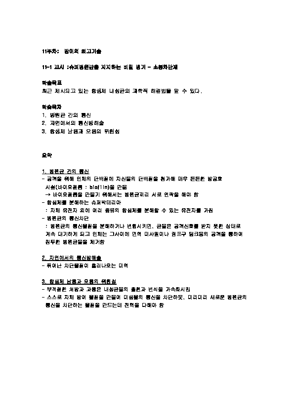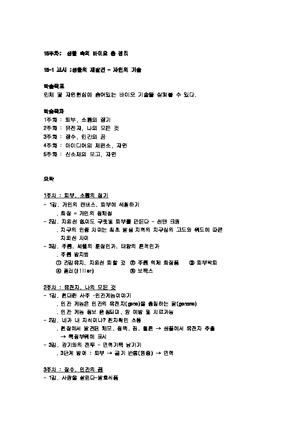 인하대 생활속바이오이야기 강의노트 합본입니다.