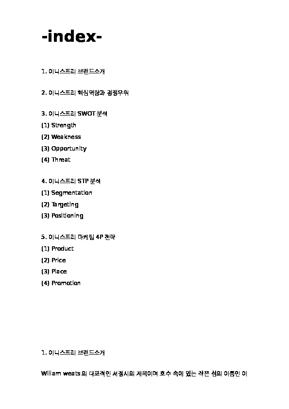 이니스프리 innisfree 브랜드분석 핵심역량,SWOT분석및 마케팅 STP,4P전략 분석