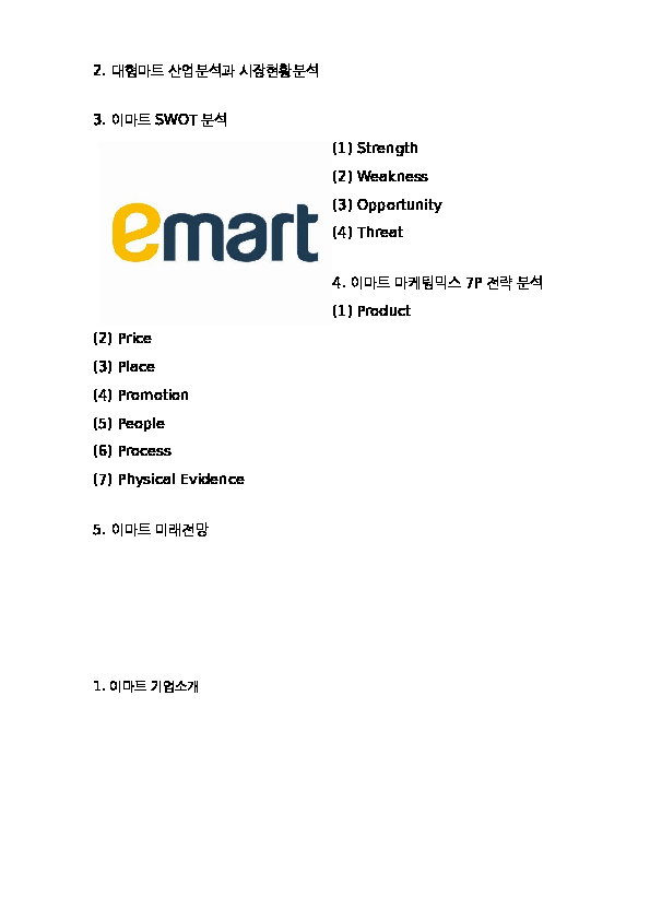 이마트 마케팅믹스 7P 전략분석과 기업분석 및 미래전망