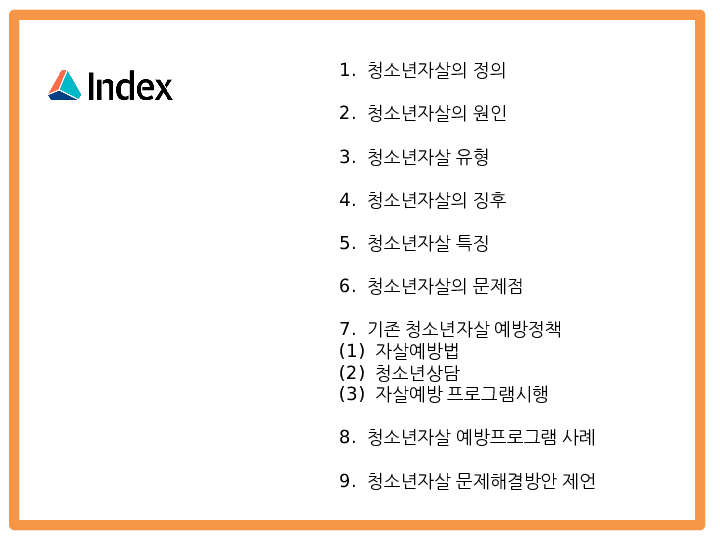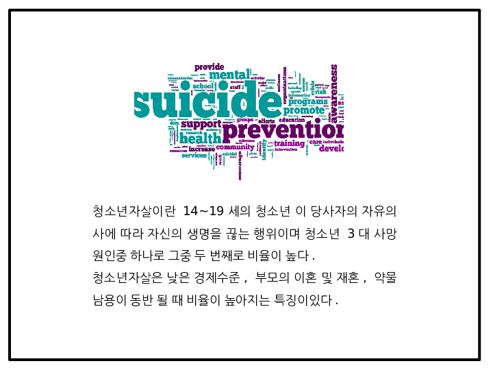 청소년자살 원인과 징후 분석및 청소년자살 문제점과 예방정책 및 예방프로그램사례분석및 청소년자살 해결방안제시 PPT