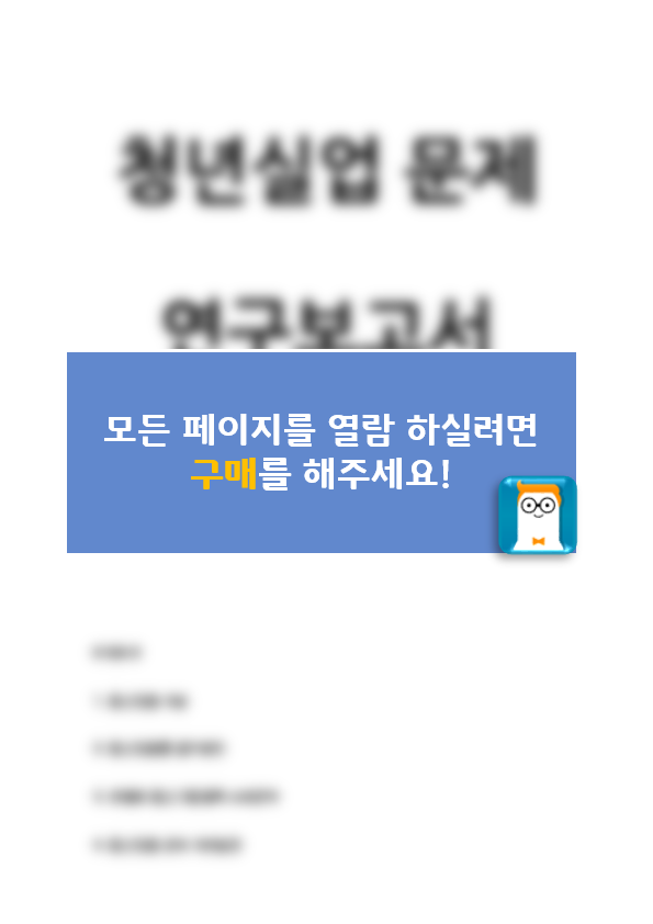 [ 청년실업 해결방안 연구 레포트 ] 청년실업 정의,원인,문제점분석과 청년실업 정부정책사례와 해결위한 대책방안제안및 나의의견