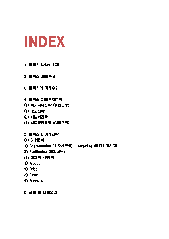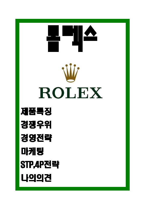 롤렉스 ROLEX 제품분석과 경영전략과 마케팅 STP,4P전략 분석 및 나의의견