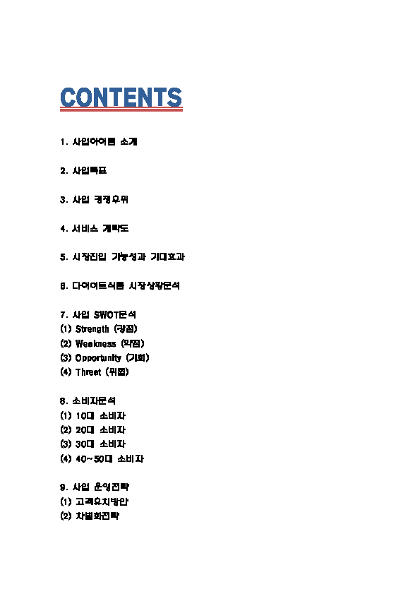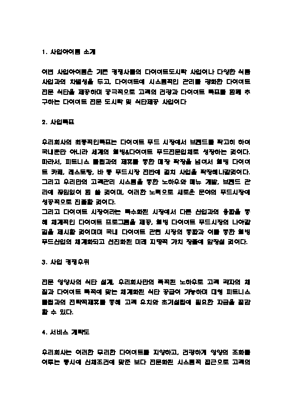 창업계획서 - 다이어트 도시락 및 식단제공업체 창업 사업계획서