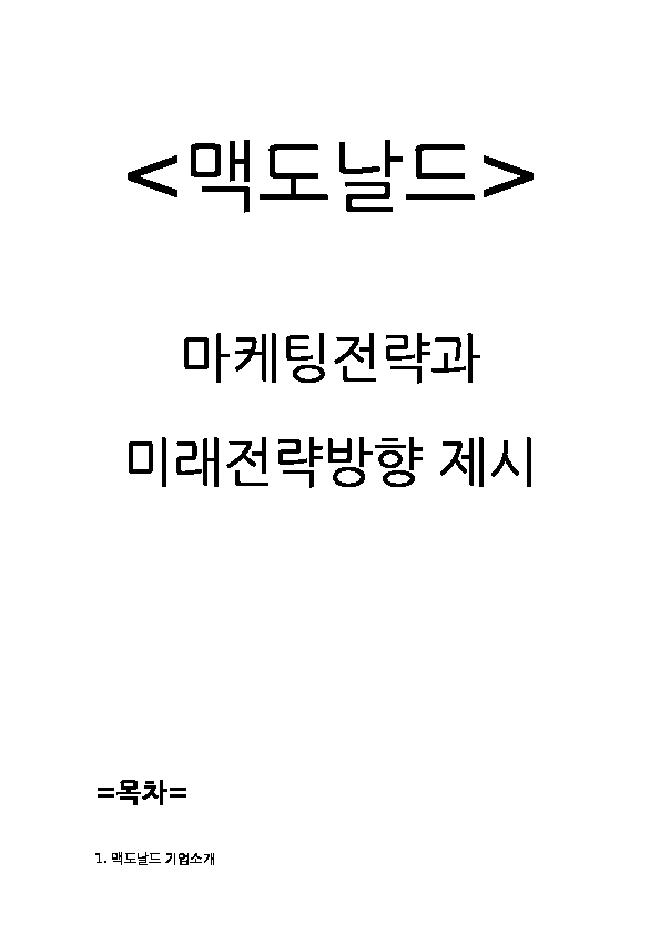 맥도날드 마케팅 SWOT,STP,4P 전략분석 및 맥도날드 미래전략방향 제시