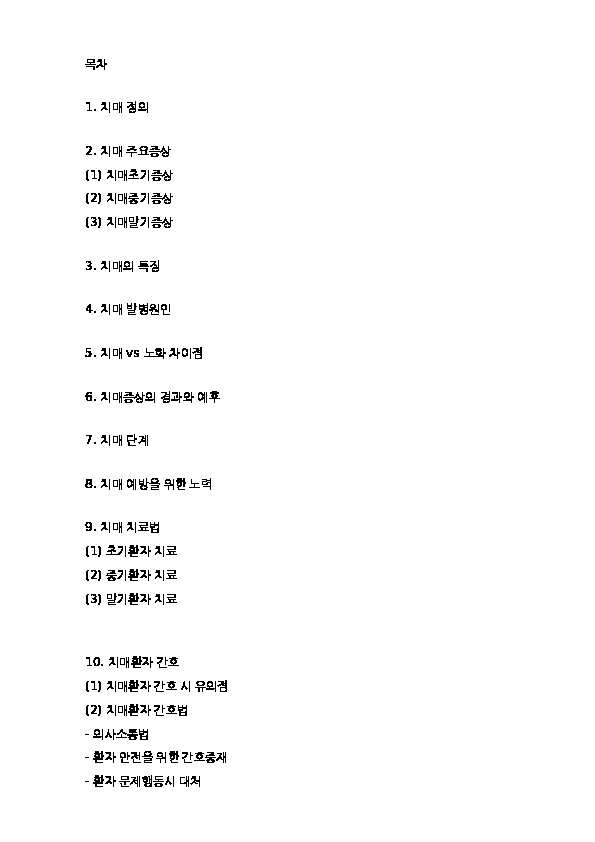 치매 간호와 개념,증상,진행과정분석 및 치매 치료와 예방법 연구