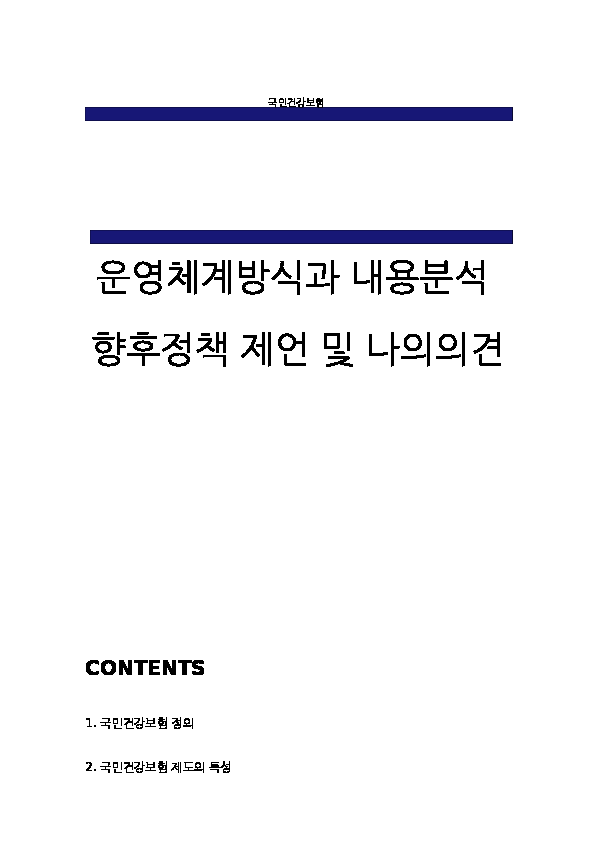 국민건강보험 문제점과 개선방안 및 국민건강보험 도입목적과 특징연구 및 나의생각 - 국민건강보험 연구레포트