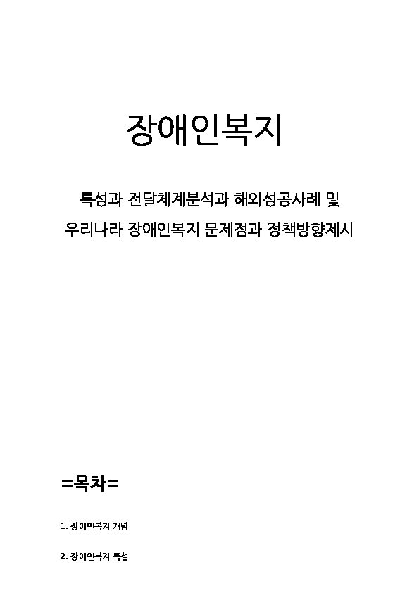 장애인복지 정책과 전달체계분석 및 우리나라 장애인복지 정책 문제점분석과 3가지 정책제언 - 장애인복지 연구레포트