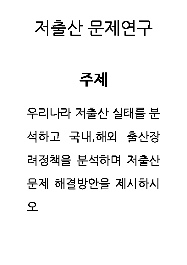 [ 저출산 문제과 해결방안연구 레포트 ] 저출산 정의,원인,문제점분석과 저출산 해결방안,선진국 사례연구및 저출산에 대한 나의의견