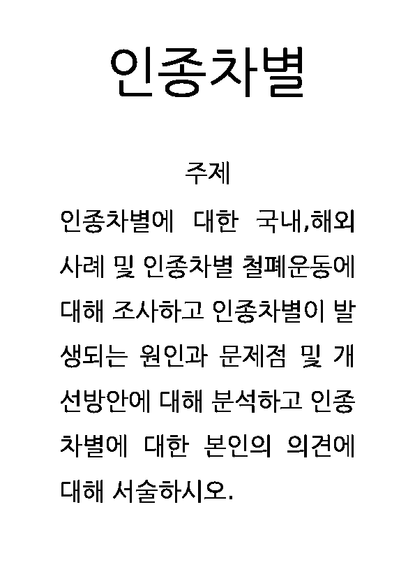인종차별 (국내 해외사례, 인종차별 철폐운동분석, 원인과 문제점분석, 개선방안제시, 나의견해)