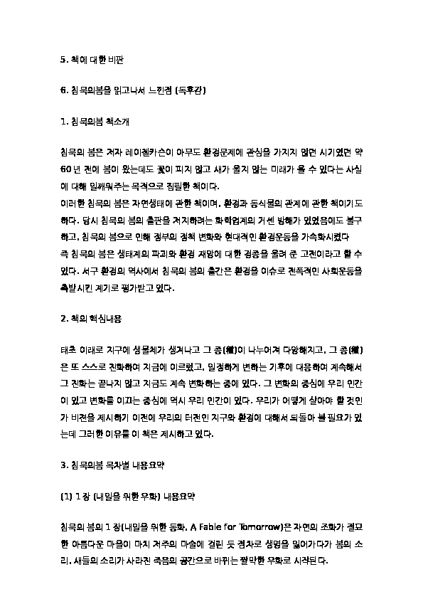 침묵의봄 독후감 - 침묵의봄 줄거리 요약과 핵심내용연구, 침묵의봄 비판과 읽고나서 느낀점