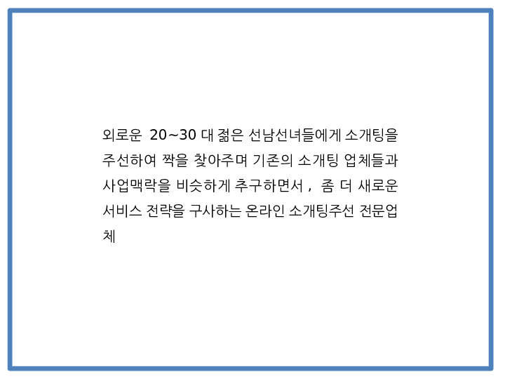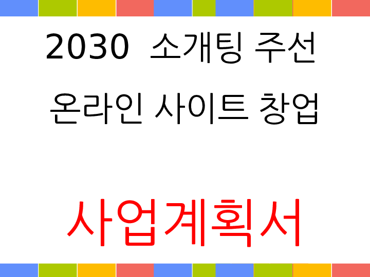 창업계획서 - 2030 소개팅 주선 온라인 사이트 창업 사업계획서 PPT