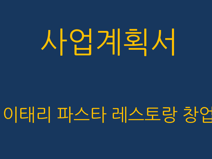 창업계획서 - 파스타 전문 패밀리 레스토랑 창업 사업계획서