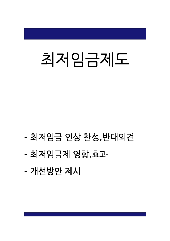 [최저임금제도 연구레포트] 최저임금제도 찬성,반대입장 정리및 문제점및 개선방안,나의의견제시와 최저임금제 개념,배경,도입효과분석