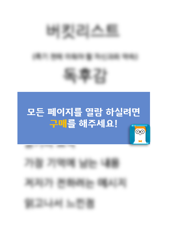 버킷리스트 (죽기 전에 이뤄야 할 자신과의 약속) 독후감 - 버킷리스트 줄거리 요약 및 가장 기억에 남는 내용과 나의생각과 버킷리스트 읽고 느낀점